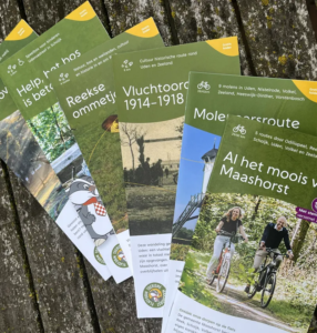 Inmiddels telt deze folderlijn 18 thema’s waaronder een Molenroute, Oorlog-en Vrederoute, Docus de Das-route en Uittips-folder. De herkenbare stijl maakt de folders herkenbaar en opvallend bij de toeristische punten in de dorpen.